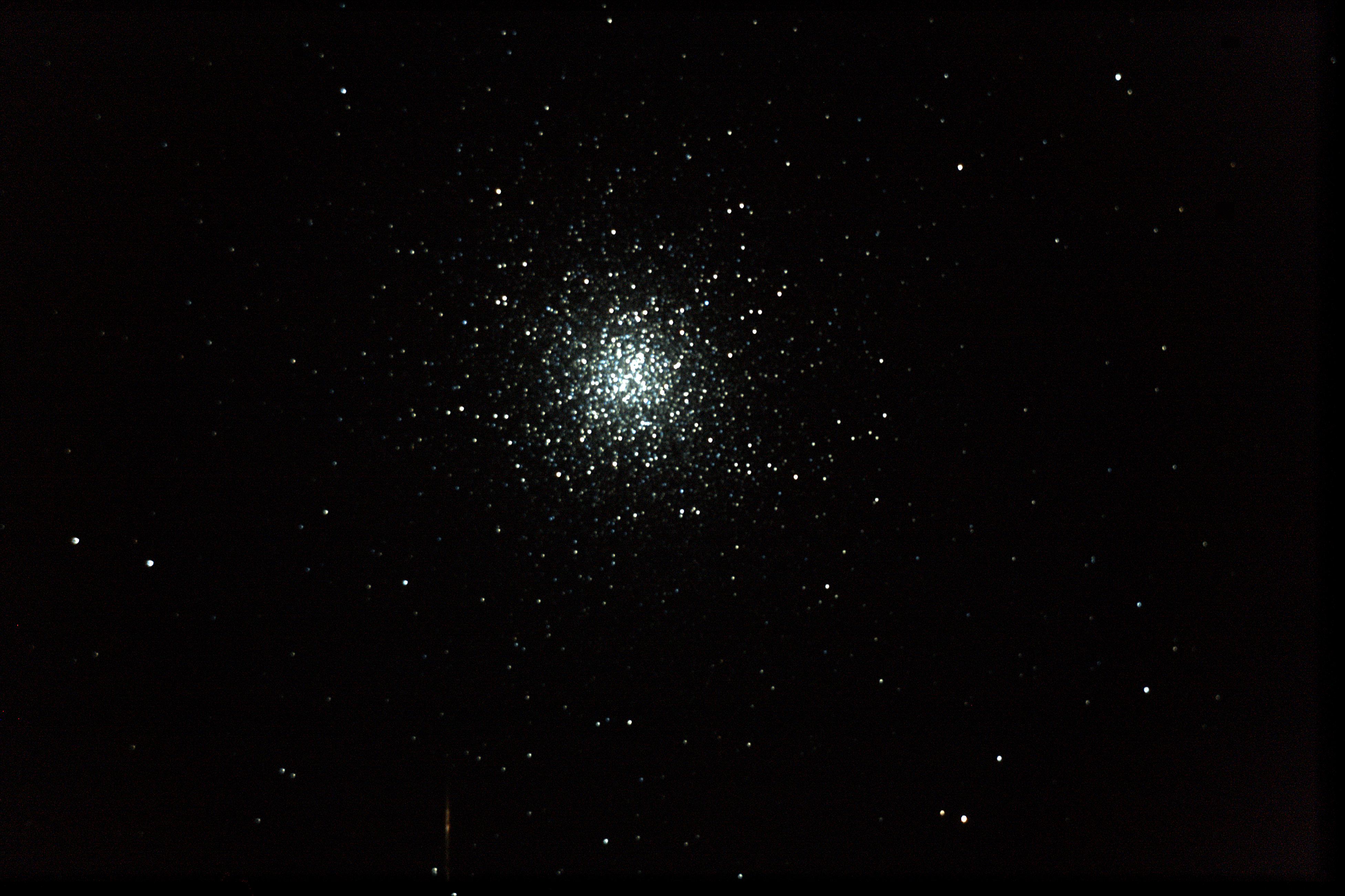 Observation de l'amas globulaire M13 et constatation à postériori sur des photos d'un point et d'un trait rouge : manque d'informations.