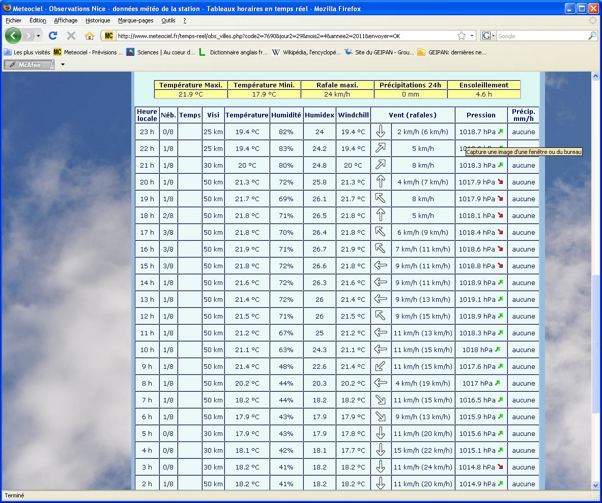 Un témoin rapporte son observation faite aux jumelles le 29 mai 2011 entre 22h410 et 22h45. Il observe le faible déplacement aléatoire Est-Sud d'une centaine de points lumineux blancs.