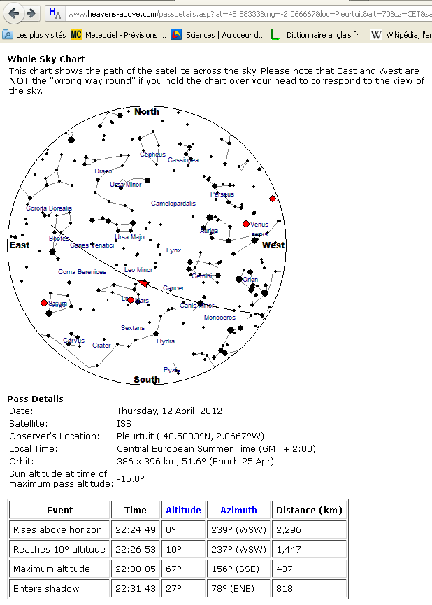 Un témoin rapporte son observation faite le 12 avril 2012 vers 22h30. Depuis son balcon, il suit durant 2 minutes le déplacement S-N d'une source lumineuse blanche. Aucune trainée et aucun bruit particulier ne sont entendus durant l'observation.