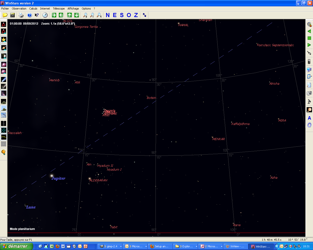La carte du ciel montre la planète Jupiter et l'étoile Aldébaran à la position décrite par les témoins.