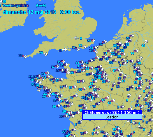 D'après Meteociel, le vent relevé à Chateauroux soufflait d'O-SO en régime bien établi (relevé semblable à Bourges).