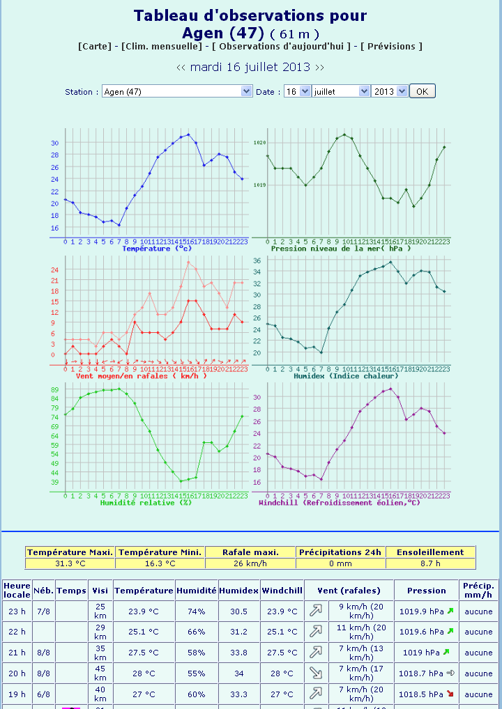 Le ciel est couvert sur Agen. Le trafic aérien est assez chargé à haute altitude (7000 à 12000m) mais ne peut expliquer le phénomène observé.