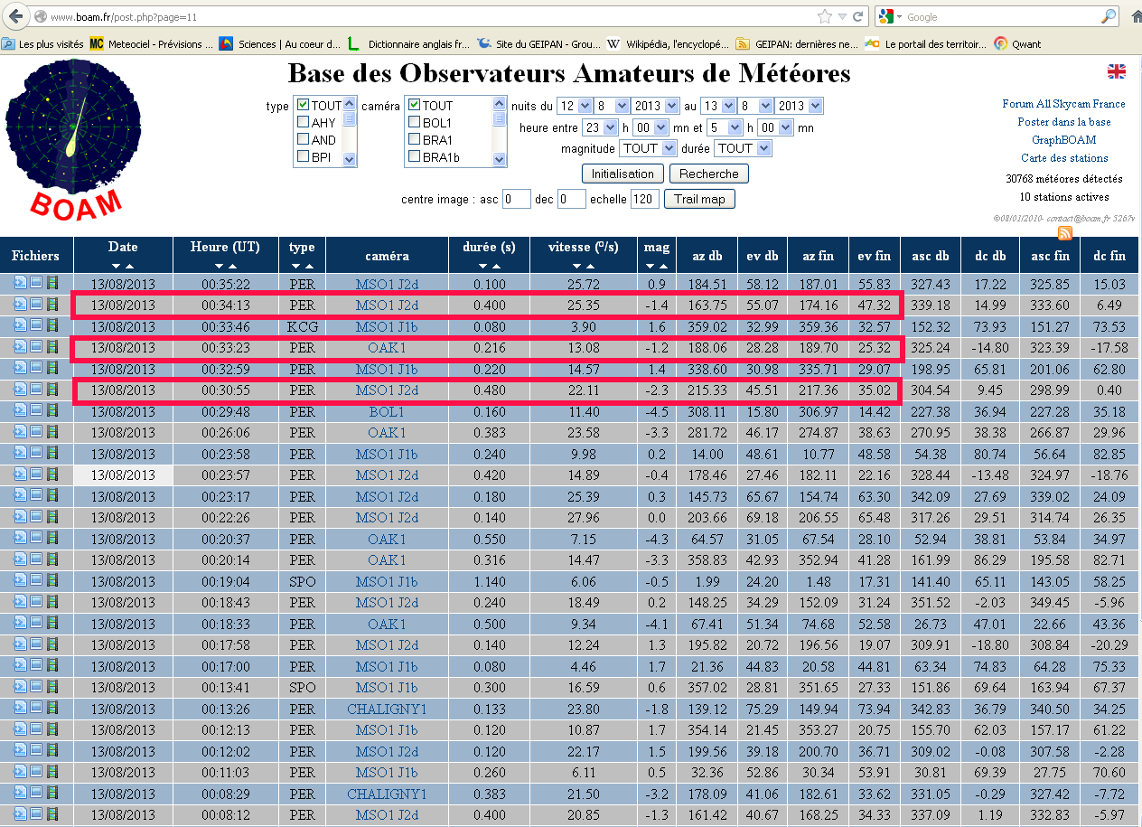 Ce témoignage fait état de points lumineux fixes présents chaque soir dans le ciel, sans autre précision. Mais aussi d'un phénomène lumineux bref ce 13 août 2013 ; seul ce dernier phénomène a été considéré, faute d'informations précises pour les premiers phénomènes, très probablement liés aux étoiles.