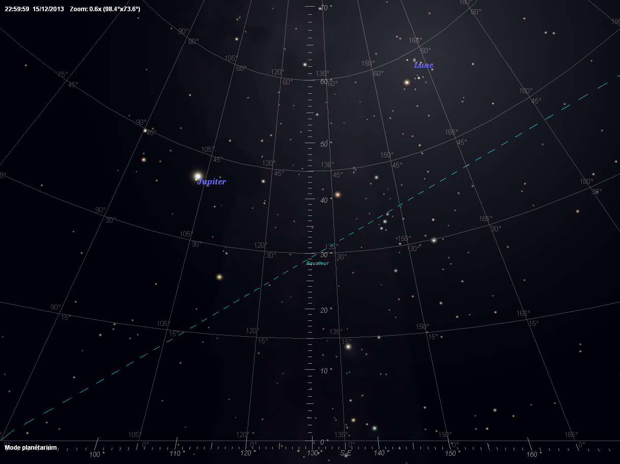 Très longue observation d'un phénomène lumineux de couleur et stationnaire dans le ciel : observation de Jupiter.