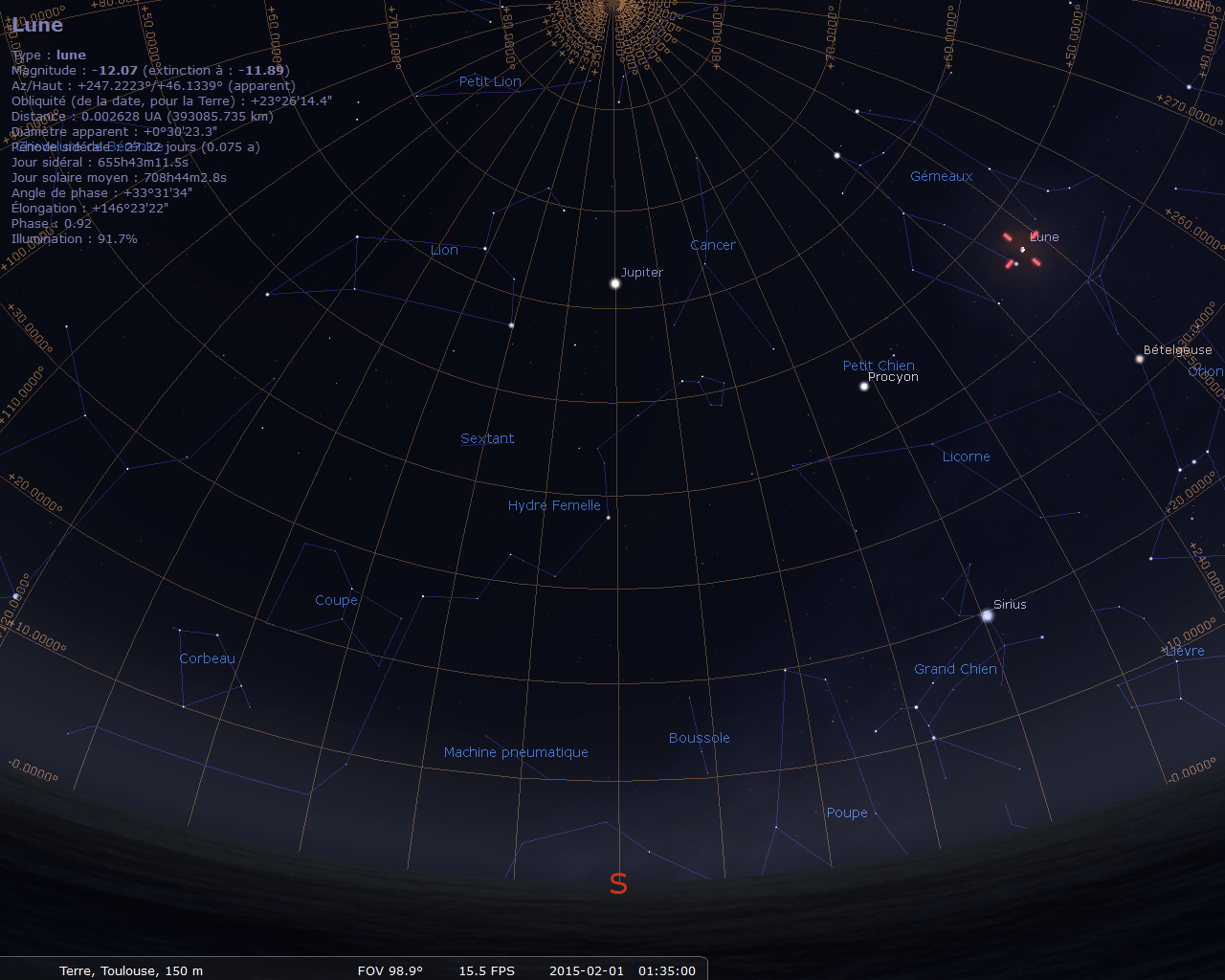 L'observation d'une lumière fixe durant plus d'une heure évoque un phénomène astronomique. La lune est particulièrement visible ce soir là, presque pleine. La couleur bleue indiquée par le témoin évoque le clair de lune. La météo est instable avec de nombreux passages nuageux, pouvant créer des trous ou zones denses de façon aléatoire.