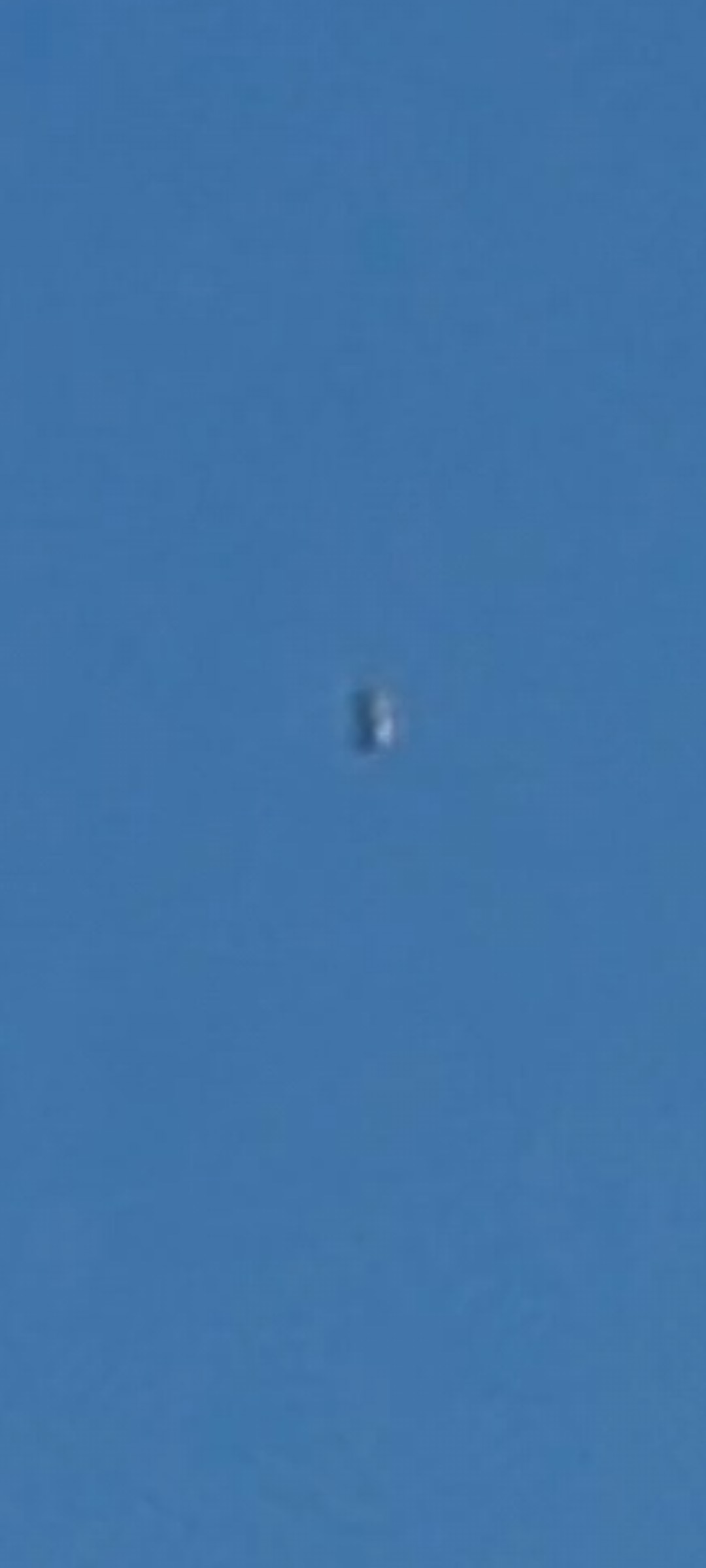 Observation dans le ciel du déplacement d'un objet de forme tubulaire de couleur aluminium et sombre : observation d'un ballon festif en mylar.