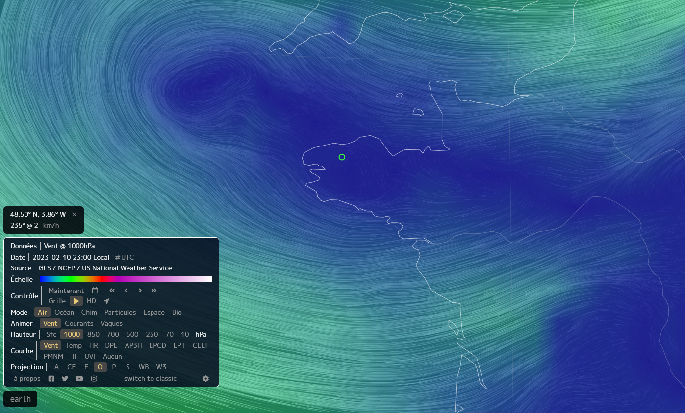 Le témoin mentionne que les PANs évoluaient de sa droite vers sa gauche, compte tenu de son sens de déplacement : route de Keravel en provenance de Morlaix, les PANs pouvaient se déplacer dans le quadrant suivant : nord-ouest vers sud-est à sud-ouest vers nord est. Des vents à 23h, à une altitude d'environ 100m, au niveau du lieu d'observation, viennent du 235° soit de l'ouest-sud-ouest sont compatibles avec le sens de déplacement des PANs. Comme la force du vent est très faible : 2km/h, cela peut expliquer les déplacements erratiques des PANs soumis au moindre changement local d'orientation (voir le doc Earthnull).